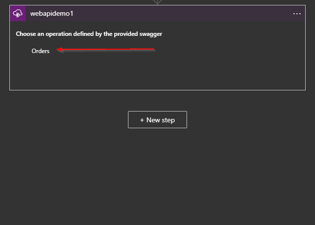 After selecting my API, I select the Orders operation.