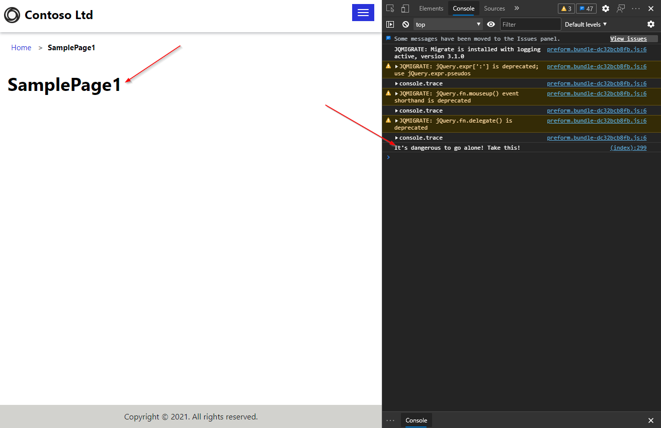 I then browsed the site and confirmed my console.log message is displayed when viewing my page.