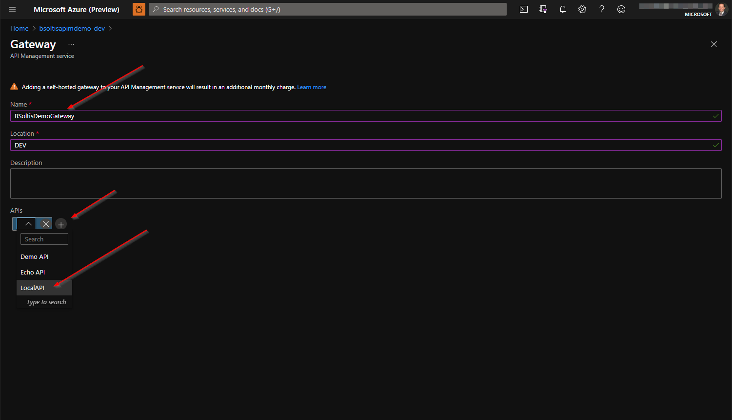 The first step is to create my self-hosted gateway within the Azure APIM service.