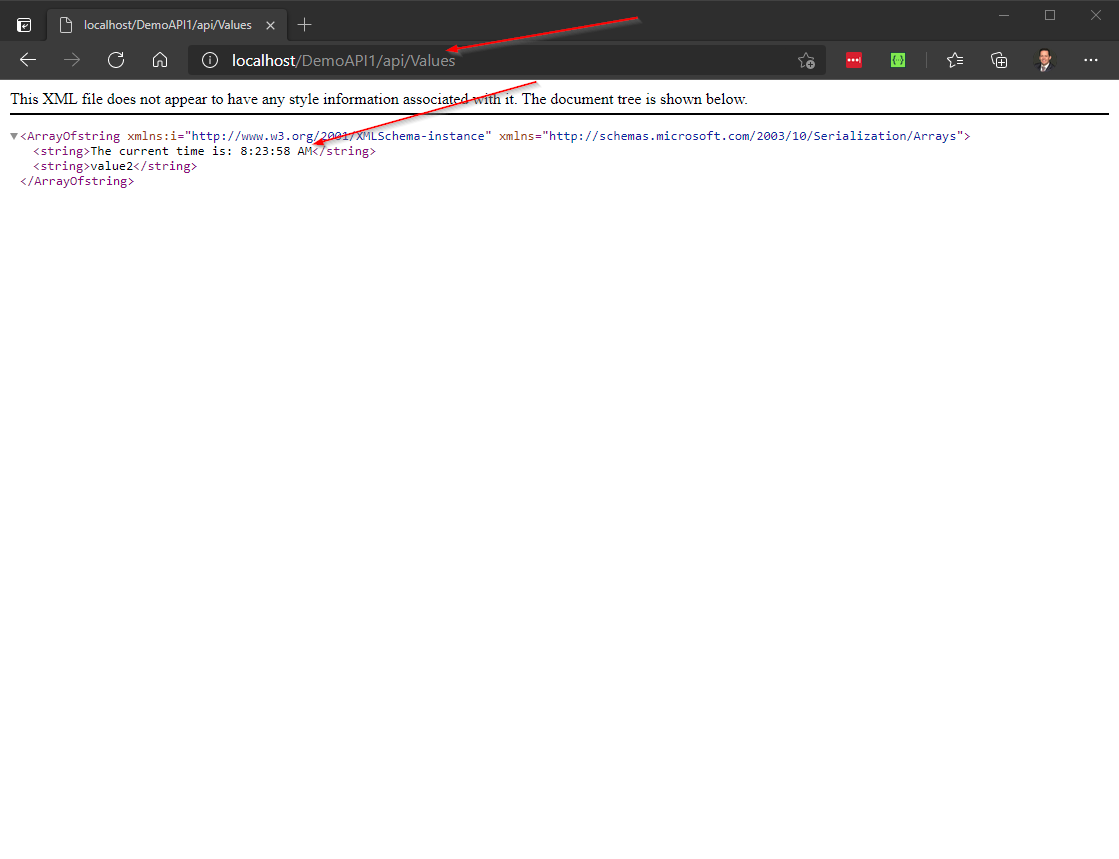 An API running on-prem (local) on the corporate network that returns the current time when a request is made to it.