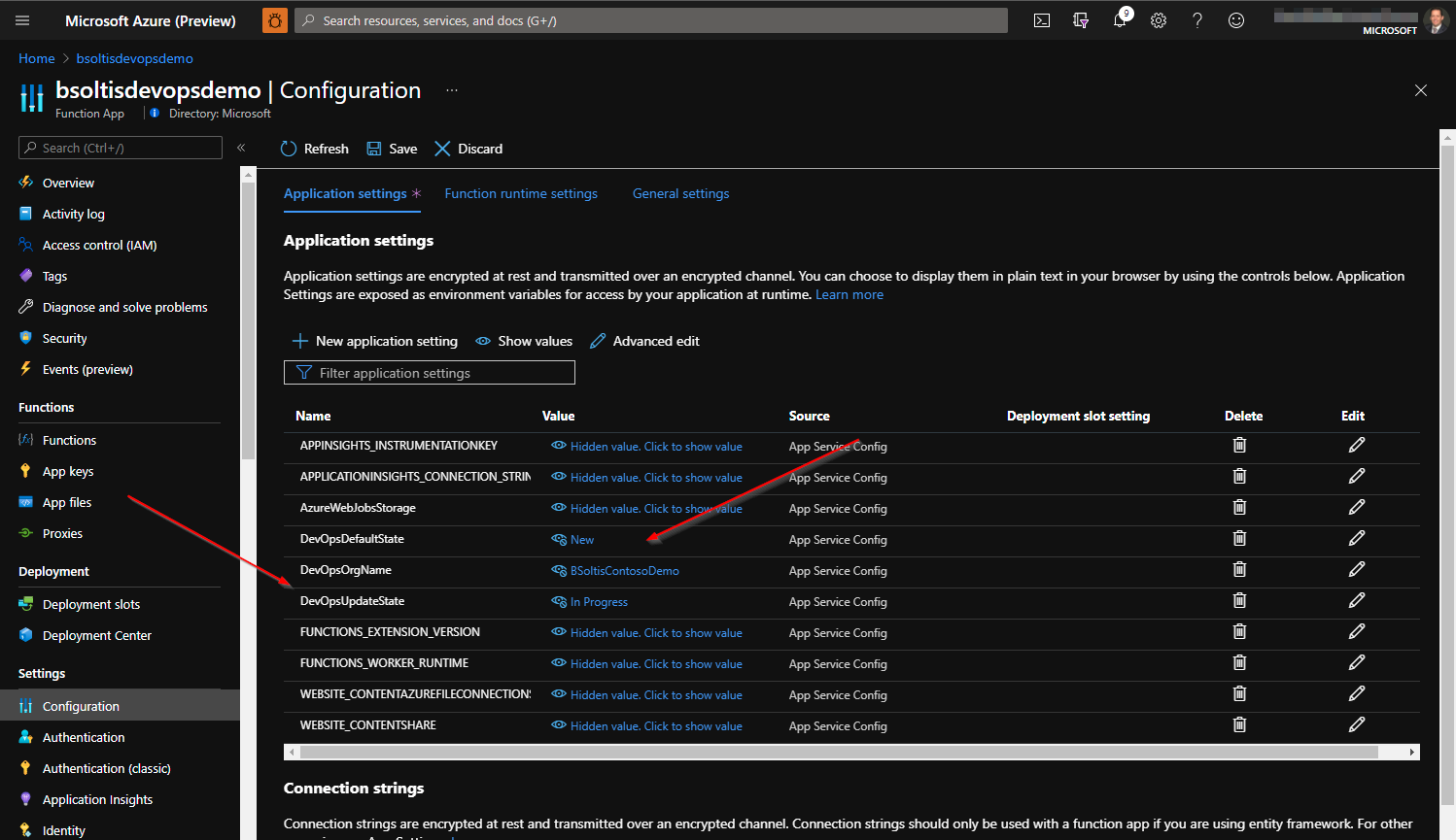 In the demo Azure Function project, there are four (4) settings that need to be configured.