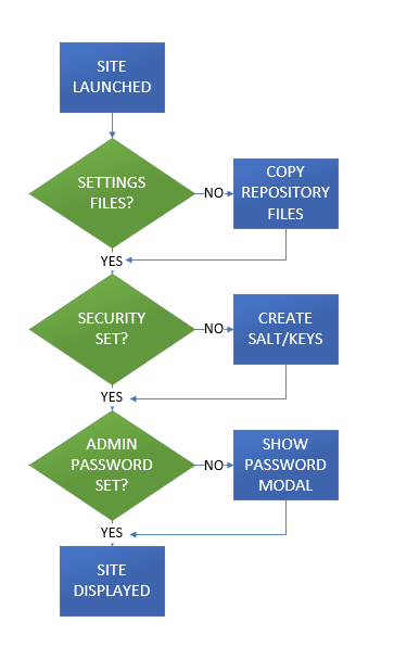 - The site loops through all files in the /repository folder and copies the file to the /settings file if it does not exist. Any existing files in the /settings are skipped. This ensures the site configuration is retained.