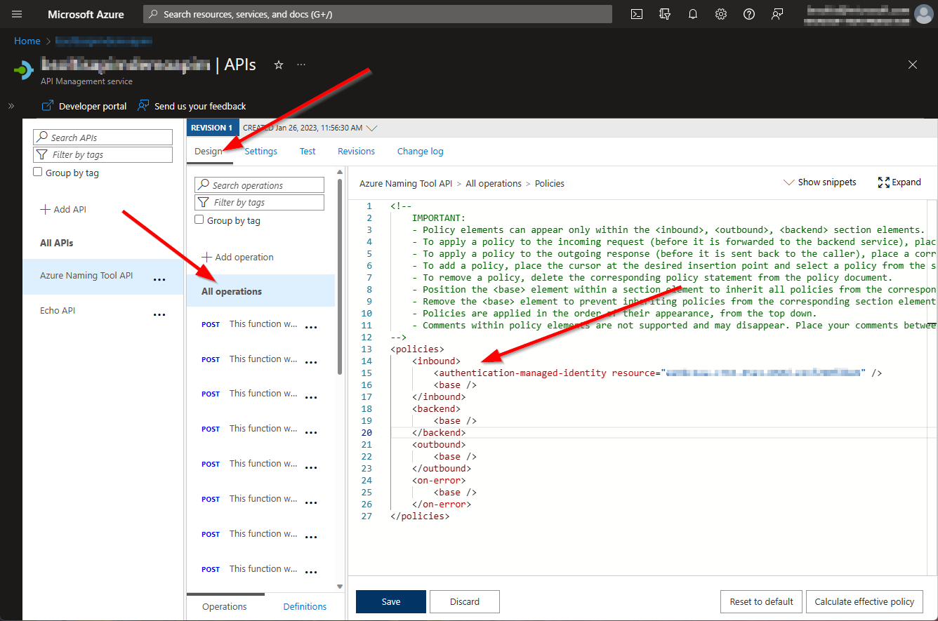 Hmm, that’s no good. Because the App Service is expecting the request to be authenticated with the identity provider, the traffic coming from APIM is failing. Let’s fix that!
