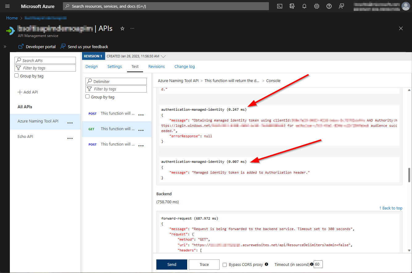 With the Managed Identity configured and policy in place, all requests passing through APIM would be authenticated when they get to the Azure App Service.