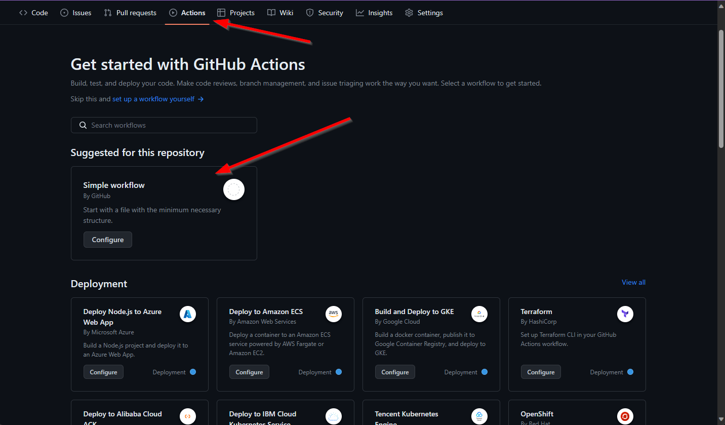 If you’re new to GitHub Actions, check out the MANY templates provided. GitHub will evaluate your project and recommend specific templates based on your language/project type.