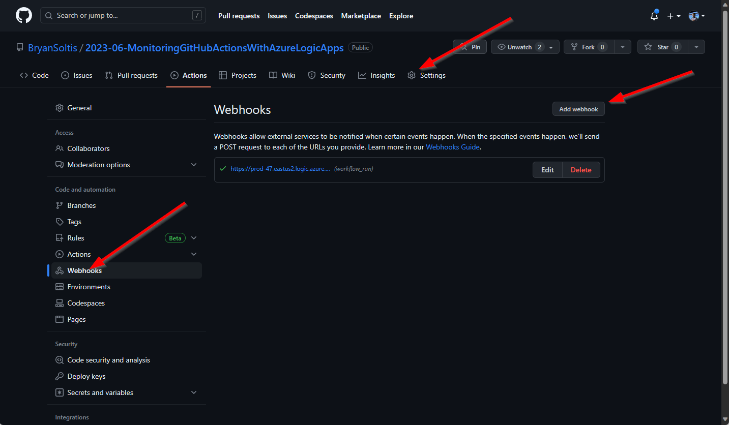 When working with GitHub, nearly every aspect of the platform is extendable. By levering Webhooks and Azure Logic Apps, you can build robust monitoring and alerting into your CI/CD process. Be sure to check out all the Webhook events to tailor the experience to your needs. Good luck!