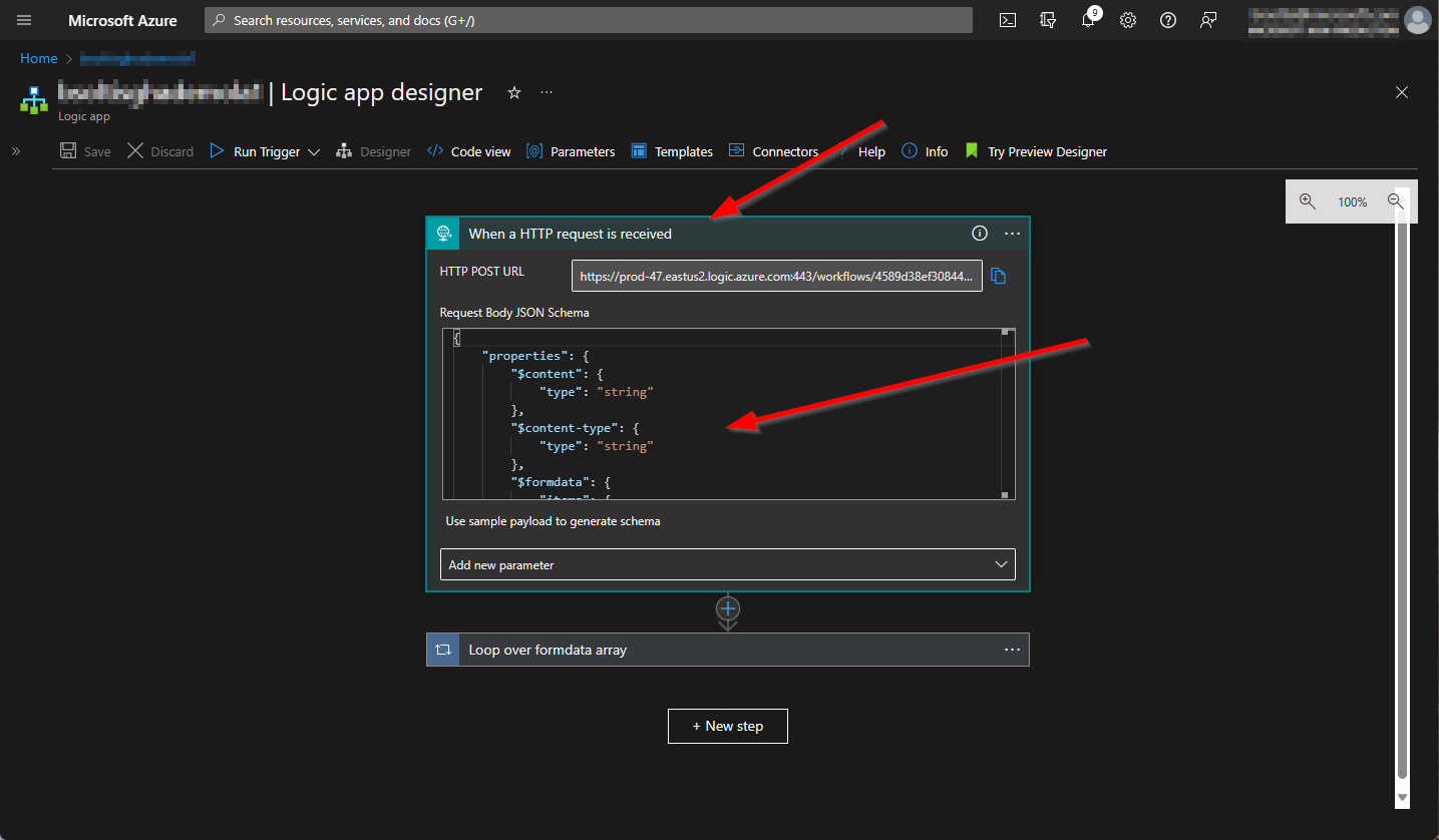 With the Azure Logic App created, I need to update my GitHub Payload URL. In my Logic App, I get the URL.