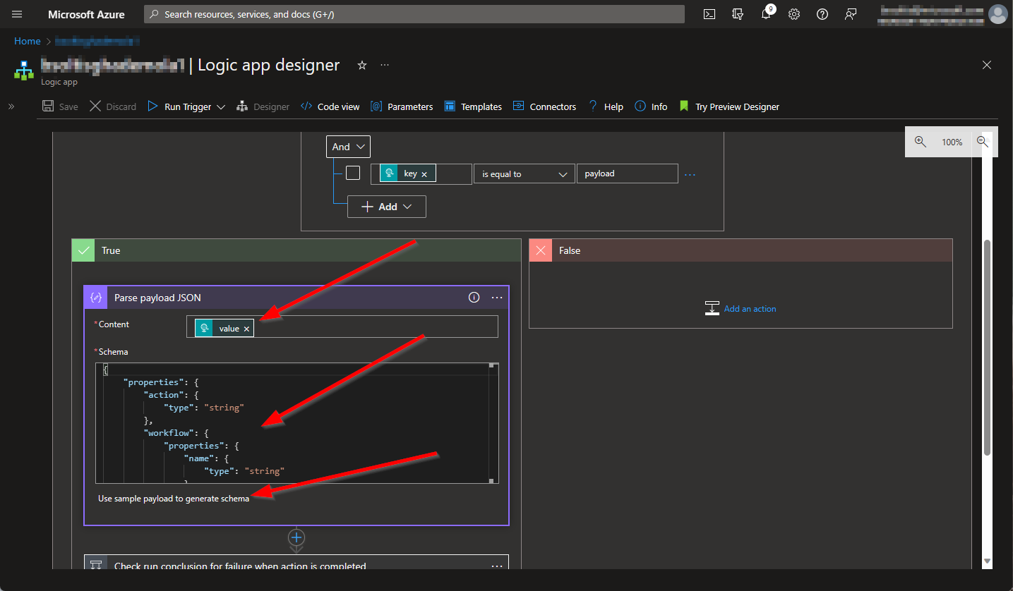 The payload value will be a string. With Logic Apps, it’s much easier to work with JSON, so I use the built-in Parse JSON step to format the data.
