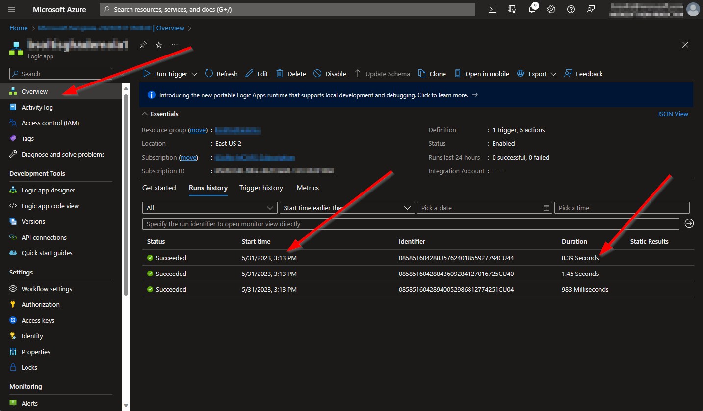 Because my Logic App is configured to post to Teams when the Action failed, the execution time will be longer.