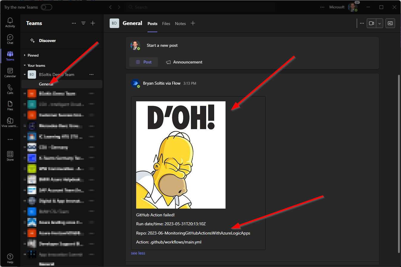 This is alerting component. In my demo, I’m going to post an alert in a Teams channel if the GitHub Action fails.