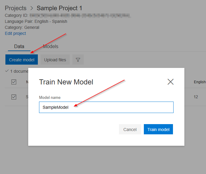 With the project created, I’m ready to upload my data files. In my case, I have a single Excel file to hold my phrase dictionary. If you opt for your own translated content, you can upload multiple files to help train and test your translation. Just know that it takes quite a bit of content to properly train your model.